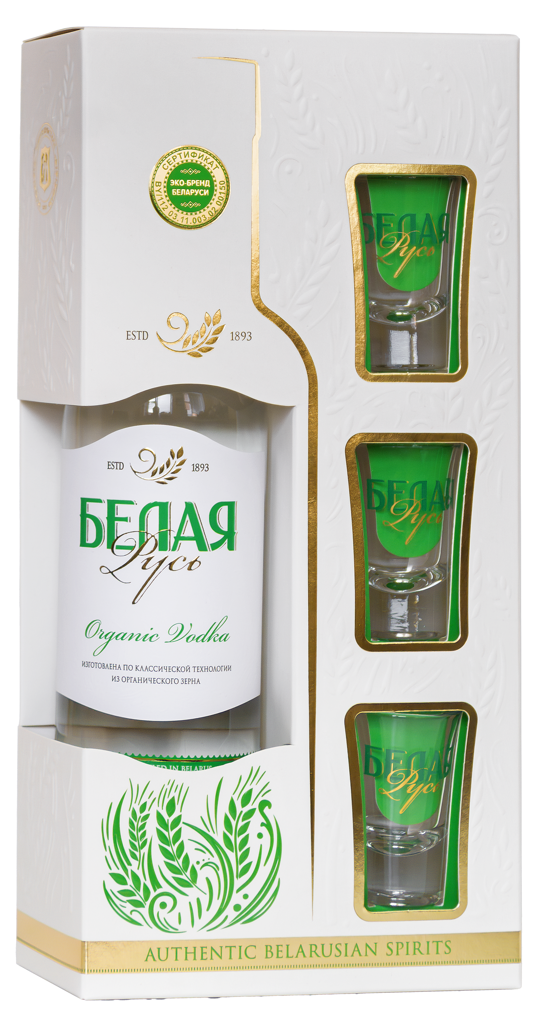 Сувенирный набор с рюмками водка органическая "Белая Русь"Подробнее -
